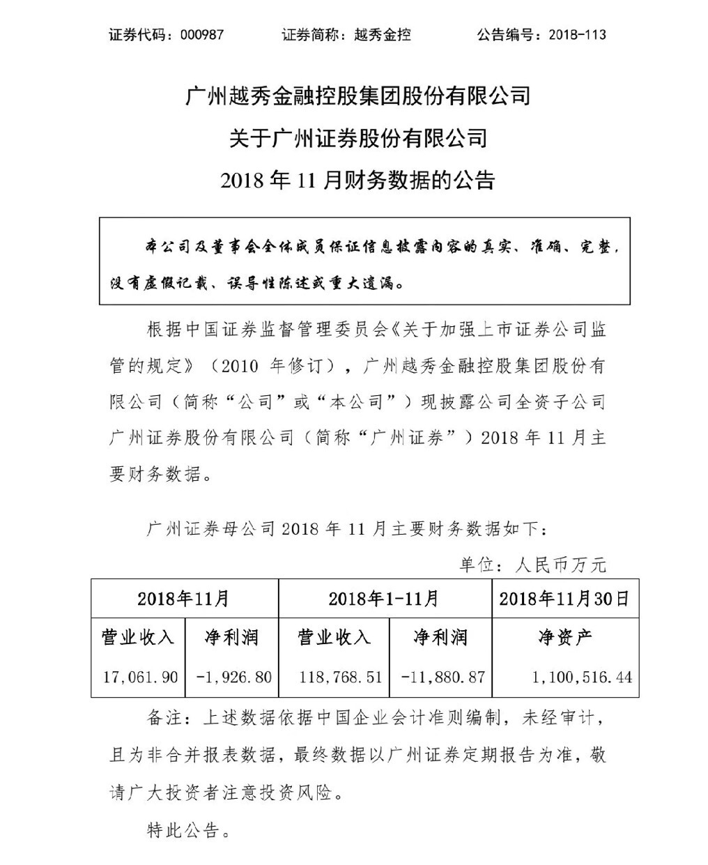 今年11月,广州证券亏损1000多万,前11月已累计亏损1个多亿。