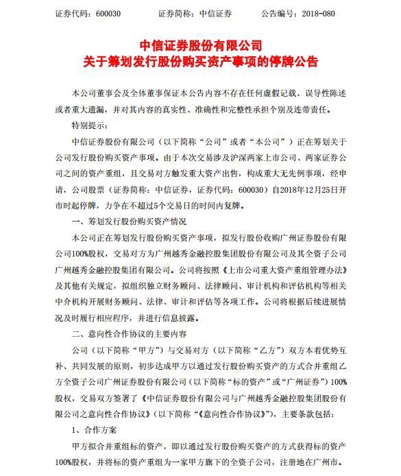 中信证券( 06030.HK/600030.SH),这个龙头券商,趁着市场不注意,突然就说要去买个券商回来:广州证券(000987.SZ)。