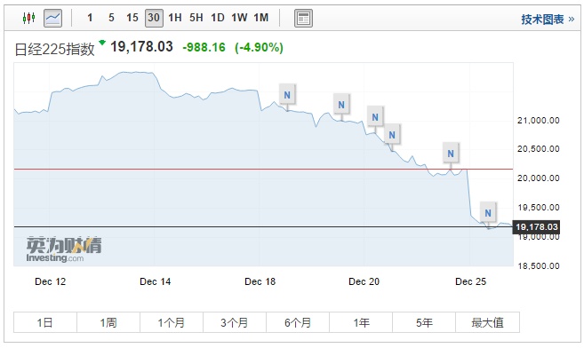 智通财经APP获悉,周二日本日经225指数收跌5%,自10月2日高点回落逾20%,进入熊市。东证指数收跌4.9%,上周东证指数已进入熊市。