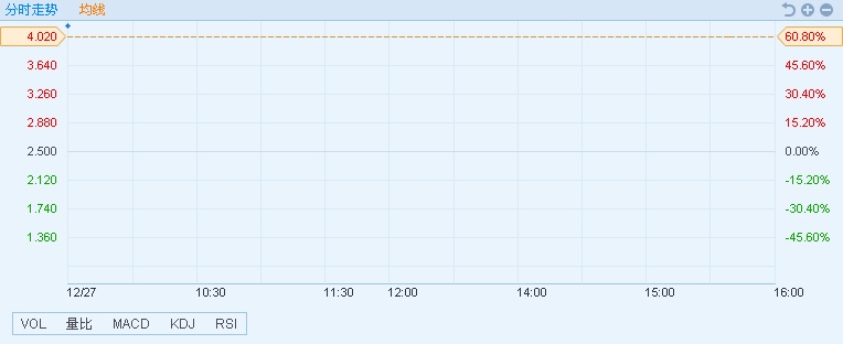智通财经APP获悉,停牌一周的哈尔滨电气(01133)今日复牌,股价高开逾六成,截至9时20分,涨60.08%,报价4.02港元,成交额373.06万港元。