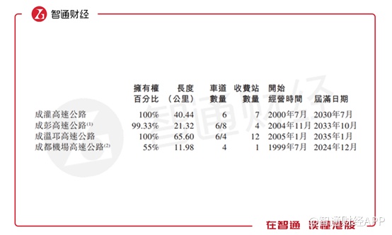 智通财经APP了解到,成都高速公路网络主要包括四条高速公路:成灌高速、成彭高速、成都机场以及成温邛高速公路,并持有城北出口高速公路40%的股权。