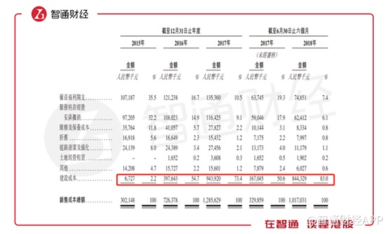 当然,建设项目带来总收增加的同时,也带来了建设成本和销售成本的飞升,2015年至2017年建设成本分别为670万、3.98亿元及9.44亿元,导致毛利率由2015年的61.5%降至2017年的27.9%,2018年前六月则仅有20.5%。