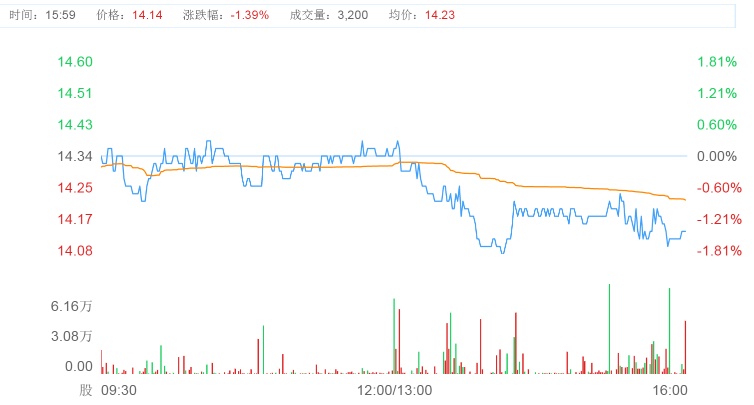 截至今日收盘,中金公司跌1.39%,报14.14港元。
