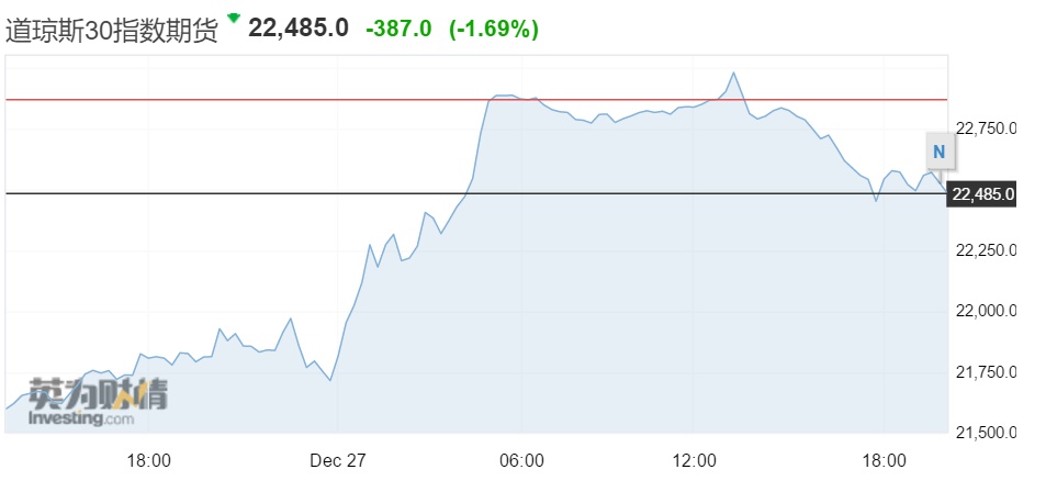 智通财经APP获悉,随着市场焦点重返美国政治的不确定性和紧张的贸易局势,乐观情绪消退,美股期货周四盘前走低。截至发稿,道指期货跌1.69%或387点;标指期货跌1.52%或37.5点;纳指期货跌1.52%或95.5点。