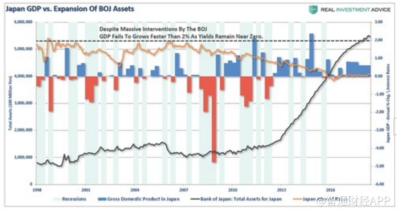 值得注意的是,自1998年以来,日本还没有达到2%的经济增长率。即使利率接近于零,经济增长仍深陷在1%以下。几乎没有论据证明通过购买资产来推高资产价格会导致经济强劲增长,或者不断上升的预算赤字意味着更高的利率。