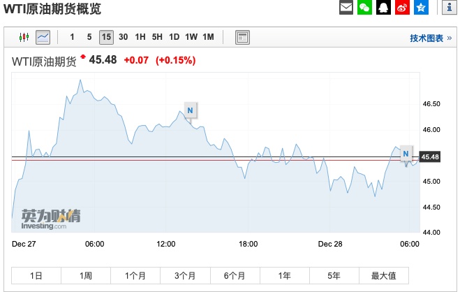 截至发稿,WTI原油涨0.07美元,涨幅0.15%,报45.48美元/桶。