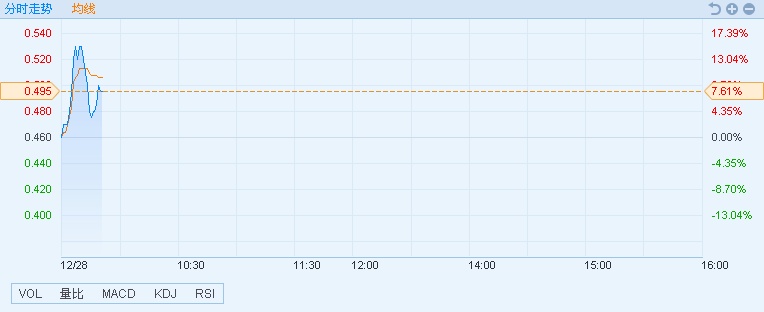 智通财经APP获悉,熊猫绿能(00686)早盘股价直线拉升,随后开始跳水,截至9时49分,涨7.61%,报价0.495港元,成交额1597.15万港元。
