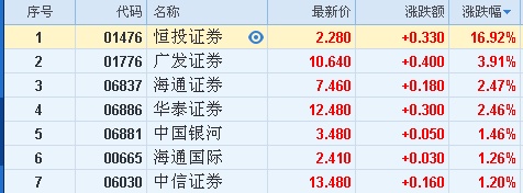 智通财经APP获悉,A股券商板块盘中飙升,板块整体涨幅3.25%,板块内国海证券(000759)大涨8%,太平洋(601099)涨超6%,港股中资券商股亦跟随上涨,截至发稿,小盘股恒投证券(01476)涨14.36%,广发证券(01776)涨4.1%,海通证券(06837)华泰证券(06886)等涨逾2%。