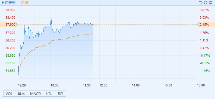 目标价120港元。截至11时46分,涨2.45%,报价87.9港元,成交额8743.94万。