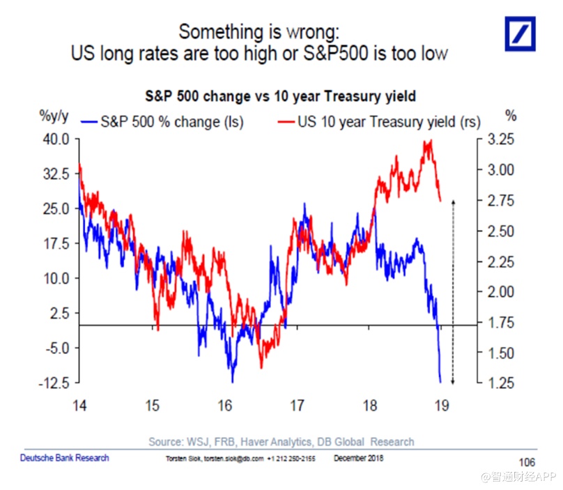 Slok在报告中解释道:“有一些因素压制着股票价格,但没有影响市场利率,或者说有一些因素稳定了市场利率,而没有影响股票价格。”影响债券价格的最大关键点就是市场利率,呈反比关系。