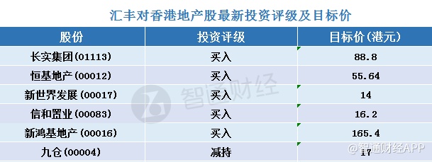 一、汇丰对香港地产股最新投资评级及目标价汇总