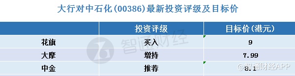 二、大行对中石化(00386)最新投资评级及目标价汇总
