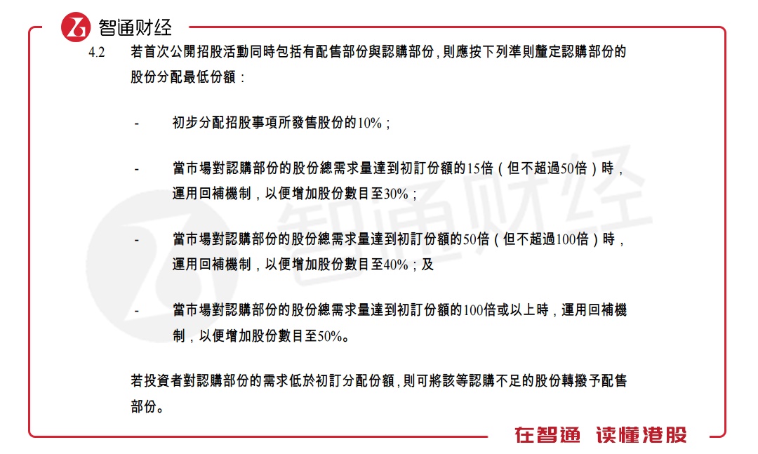 若公开认购部分超额认购15倍-50倍时,会触发回拨机制,国际配售的股份将拨至公开认购部分,使公开认购部分的股份增加至发行总量的30%;