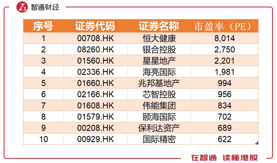 虽然港股估值不高的情况普遍存在,但在2018年仍然有一些大家看好的股票。市盈率上千倍的有四支,恒大健康以8014倍市盈率远远甩出其它标的,银合控股、星星地产、海亮国际分别以2750、2201、1981倍市盈率分列二、三、四名。