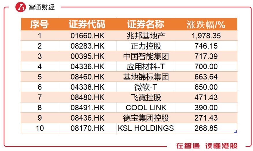 2018年,兆邦基地产全年累计上涨1978.35%,傲视群雄,远超第二名正力控股的746.15%,之后涨幅缓慢下降,第十名涨幅为268.85%;