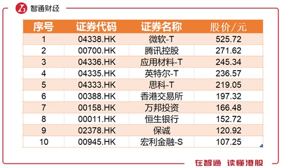 2018年,刨去美明星股,在港上市企业中,腾讯控股股价271.62元依旧领跑,港交所以197.32元位居第二。