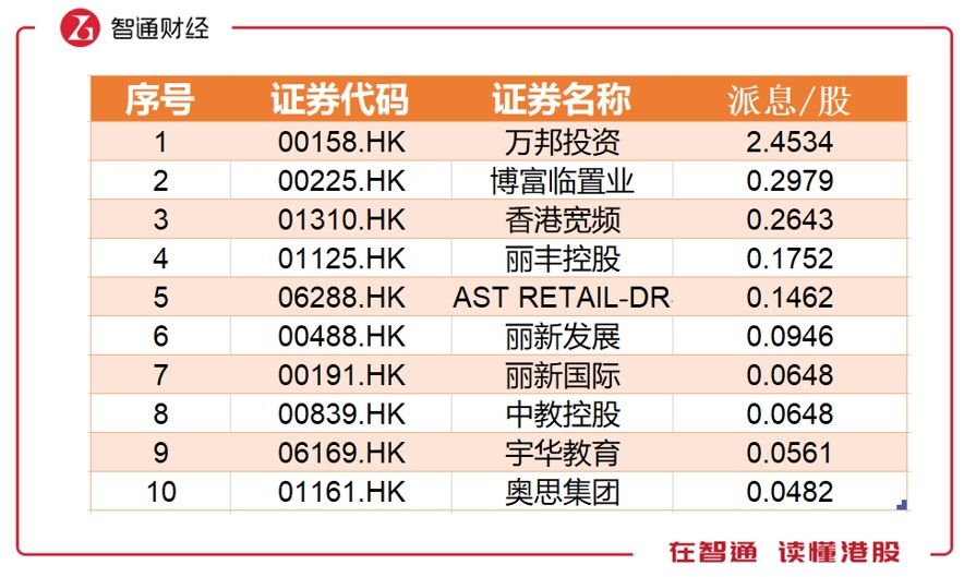 2018年行情低迷,分红派息自然也不理想,除了万邦投资以2.45元/股派息位居榜首外,其余派息均不超过1元,第二名博富临置业为0.2979元/股。