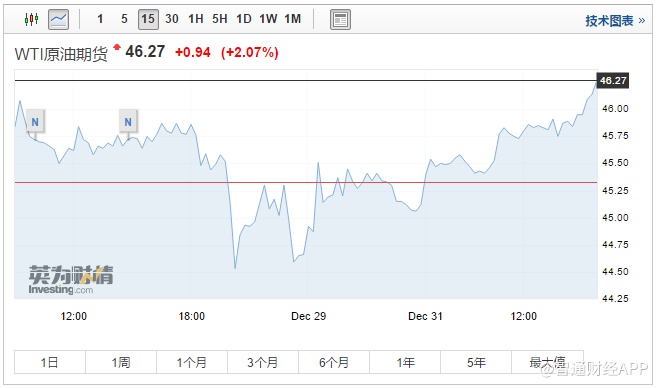 同时,WTI原油价格亦上涨2.07%,报46.27美元/桶。