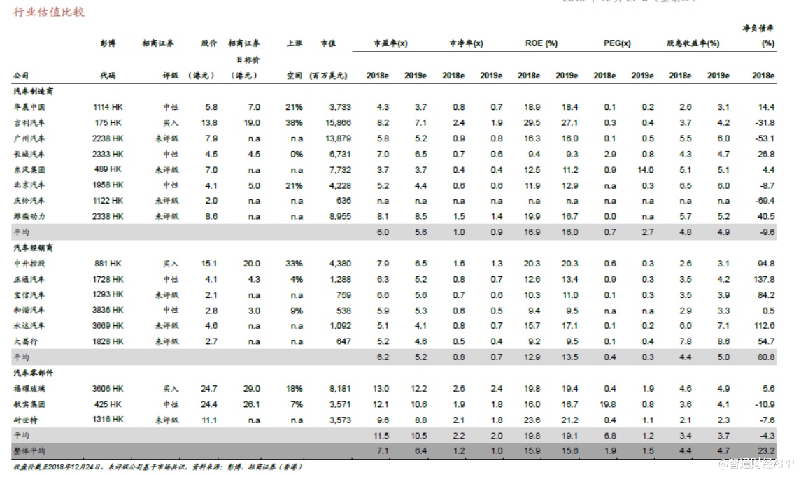 3)北京汽车(01958 HK,中性)旗下北京奔驰保持强周期节奏,但北京现代及自主品牌竞争力较弱,维持中性评级。12月初彭博社报道戴姆勒或有意增持奔驰合营公司股权。我们认为要警惕股权变动下行风险,如果上市公司在北京奔驰的股权占比下降,会削弱上市公司长期盈利稳定性,估值水平将有较大压力。