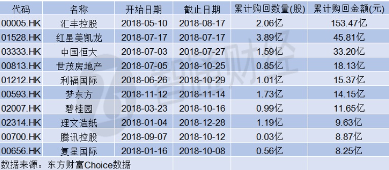 从累计回购金额来看,汇控(00005)以153.47亿港元名列第一,成为港股今年的“回购王”。红星美凯龙(01528)及恒大(03333)累计回购金额分别为45.81亿港股及33.20亿港元,居第二和第三。