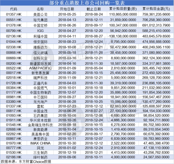 上市公司的回购操作一般表明了公司对未来发展前景的看好,因此在熊市此举不失为一个恰当维稳股价的方式,且不说最终效果如何,但至少表明了上市公司的一个态度。基于此,今年港、A股市场均掀起了回购热潮。本文将对2018年港股上市公司回购情况进行盘点。