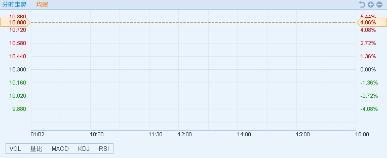 智通财经APP获悉,今日恒大健康(00708)股价大幅高开,截至9时20分,涨4.85%,报价10.8港元,成交额108万港元。