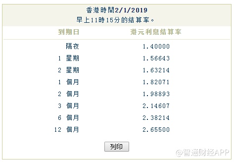 智通财经APP获悉,年后港元流动性转松,港元隔夜HIBOR报1.40000%,较上日下降3.2个百分点,创至少2006年以来最大降幅。