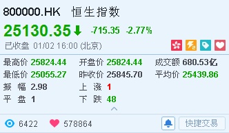 智通财经APP获悉,恒指接近平开后跳水走低,截至收盘,恒生指数跌715.35点或2.77%,报25130.35点,全日成交额达680.53亿。国企指数跌2.87%,报9833.69点,红筹指数跌3.8%,报4010.57点。