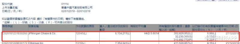 智通财经APP获悉,根据联交所资料显示,摩根大通于12月27日减持华晨中国(01114)613万股,每股作价5.66港元,总值约3469.58万港元,最新持股量减至6.99%,最新持股数目约3.52亿股。