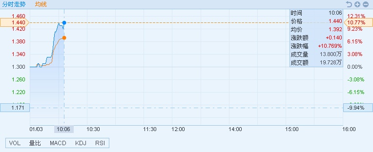 智通财经APP获悉,A股5G板块今日再度活跃,龙头东方通信(600776)三连板后张超7%,港股概念股亦跟涨,截至10时4分,京信通信(02342)涨10%,报价1.43港元,成交额1438.55万港元。
