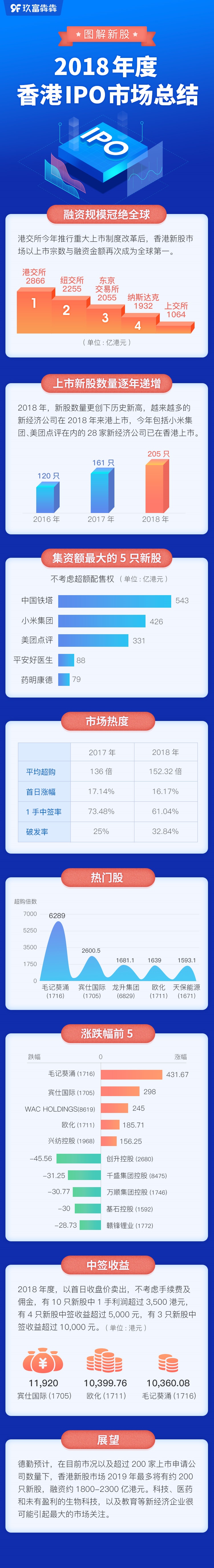 港交所今年推行重大上市制度改革后,香港新股市场以上市宗数与融资金额再次成为全球第一。德勤预计,香港新股市场2019年最多将有约200只新股,融资约1800-2300亿港元。