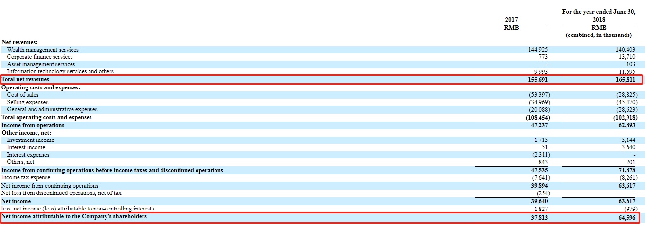 据招股书数据,截至2018上半年,普益财富净利润6361万元(约合961万美元),同比增长60%;总资产2.26亿元(约合3410万美元),同比增加18%。单看业绩的话,普益财富确实在第三方机构中较为出众,但这不能代表其是个优质的投资标的。