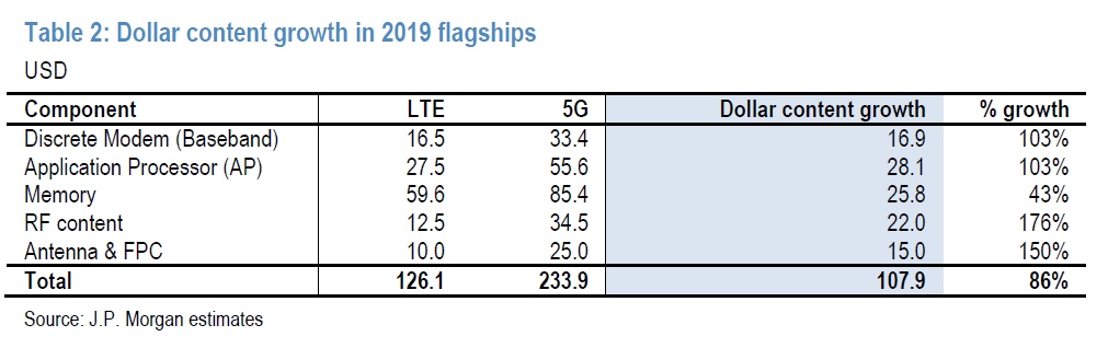 尽管预计5G的全面商业化从2020年才开始,但小摩认为,支持5G智能手机的基础部件和半导体材料可能从2019年初开始大幅增长。