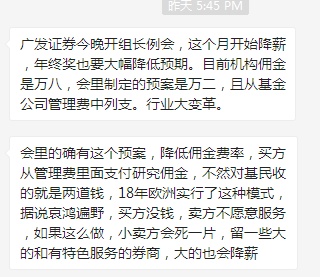 智通财经APP获悉,近日有传言称,“广发证券研究所本月开始降薪……机构佣金从万八降至万二,从基金公司管理费中列支,行业大变革”。