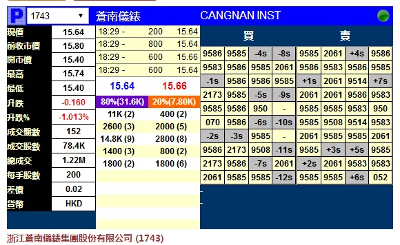 智通财经APP获悉,浙江苍南仪表集团股份有限公司(01743)将于1月3日挂牌,上市前夕,据辉立交易场资料显示,暗盘收报15.64港元,较招股价15.80港元,跌1.013%。每手200股,不计手续费,每手亏32港元。