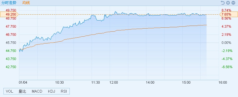 智通财经APP获悉,生物制剂服务供应商药明生物(02269)今日现强力上涨,截至15时39分,涨7.65%,报价49.25港元,成交额1.68亿港元。