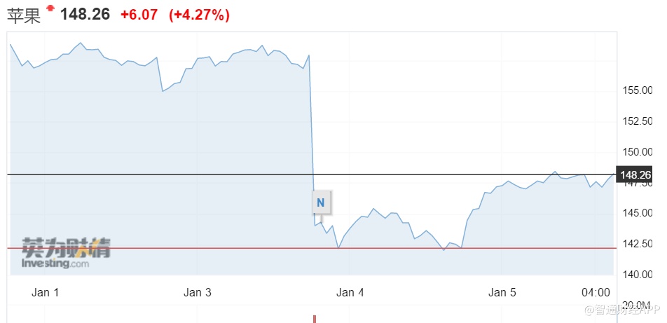 智通财经APP获悉,在周四经历2013年1月以来最大单日跌幅后,苹果公司(AAPL.US)股价于周五强势反弹4.27%,报148.26美元。