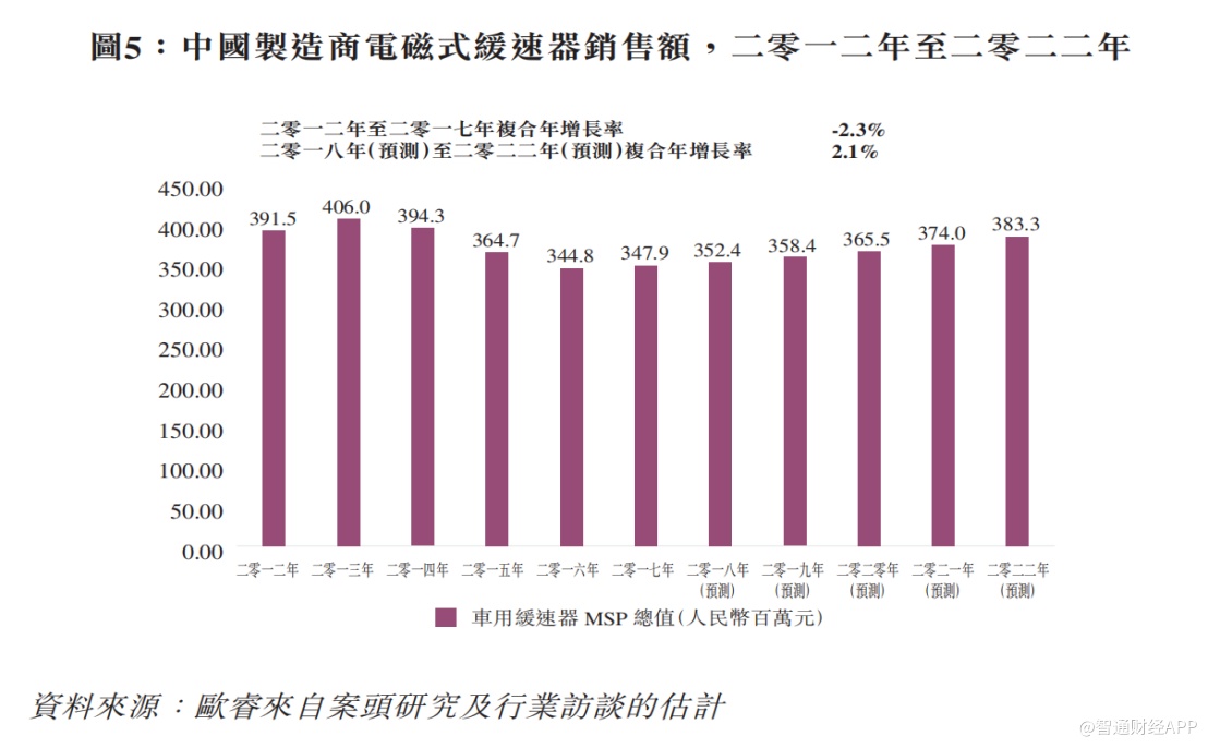 复合年增长率增长。目前,汽车装造市场电磁式缓速器渗透率约为1%,因此安装电磁式缓速器行业具有庞大发展空间。