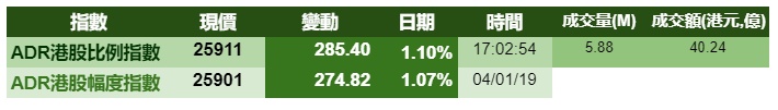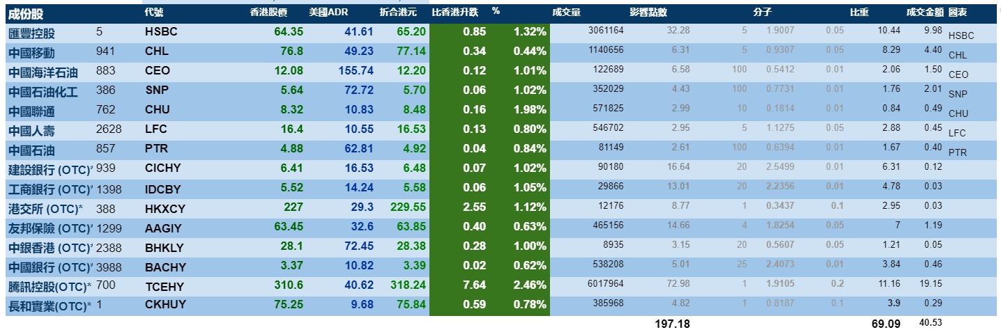 智通财经APP获悉,周五港股ADR走强,按比例计算,收报25911点,涨285.4点,涨幅1.1%。腾讯控股收报318.24元,较港收市升2.46%。