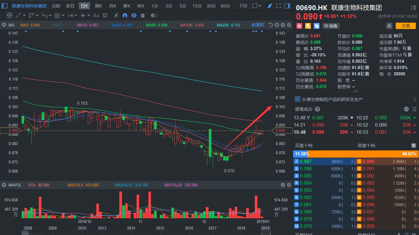 而本次受理意味着此申请一旦获批,联康生物科技将取得该品种的批量生产资格,可作为新批准仿制药于国内投产上市。如此一来,其2019年的业绩定能得到较好改观,明显利好二级市场表现。毕竟自去年12月17日以来,该股悄然飞涨了近22个点,正向跑赢医药板块约30%,良好的势头不可谓不猛。