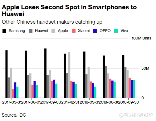 事实上,市场曾预测2018年整个智能手机市场将下降约3%。这表明,尽管华为和小米等一些较年轻的智能手机制造商在市场上取得了惊人的增长,但主要厂商在保持增长方面存在困难。三星的Galaxy旗舰系列长期以来一直面临这些问题,但苹果在2018财年依然能够实现强劲的收入增长,是因为新款iPhone大幅度提价。