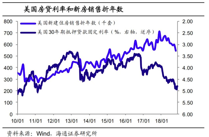但是需要警惕加息对经济的向下压力。伴随着经济持续繁荣和通胀温和回升,美联储加息节奏明显加快,18年美联储加息4次。联邦基准利率的持续上升意味着货币宽松环境不再,最先反映的是房地产领域。18年二季度以来美国新建住房销售数量从年初高点6.6万套下降至10月的4.2万套,住房投资的下降会减弱中上游行业产品的需求,进而拖累企业生产和设备投资。12月PMI指数和PMI新订单指数相比于上月分别下降1.5和2.4个百分点,反映出经济已经有所走弱。