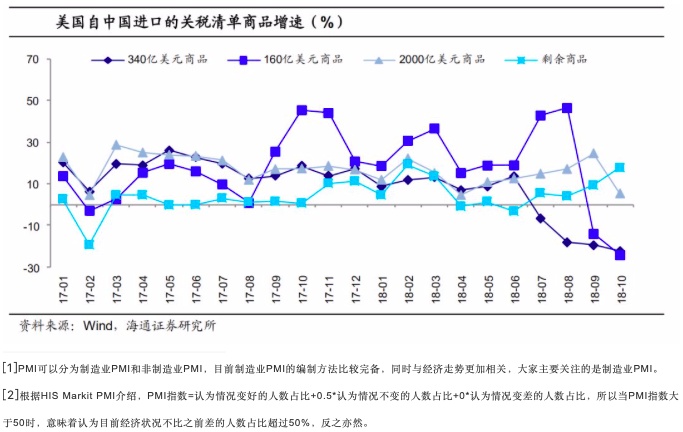 通讯、计算机和汽车行业景气度大幅下降与17年这些行业处于高点有关,但是更重要的是因为18年贸易摩擦升温。17年全球经济回暖带动相关行业需求增加,汽车、通讯设备和计算机设备PMI指数都在年末达到了2010年以来的高点。而许多行业属于全球产业链布局,18年逆全球化浪潮的崛起导致贸易冲突不断,打乱了相关企业的购货需求和生产计划,也打击了部分企业的生产信心,导致行业的需求和生产出现明显回落,行业景气度大幅下降。