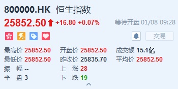 智通财经APP获悉,恒生指数开盘涨0.07%,报25852.5点。国企指数涨0.12%,报10135.79点。红筹指数涨0.29%,报4144.06点。大市盘前成交15.1亿港元。降准过后市场仍心存顾忌,效果逊预期。需静待中美贸易磋商结果。