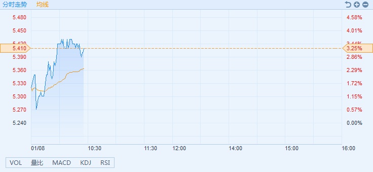 智通财经APP获悉,龙源电力(00916)2018年发电量同比增加近一成,造好股价,截至10时25分,涨3.24%,报价5.41港元,成交额1839.26万。