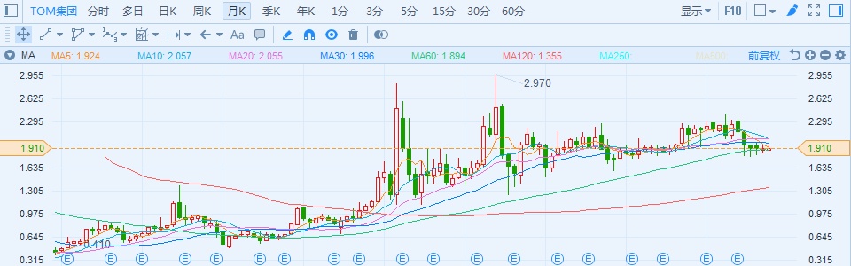这也是尽管目前TOM集团目前商誉高达4.9亿元但其股价走势还算平稳,但是转型终归是有风险,其目前资产负债率高达99.15%,亦存在一定财务风险。