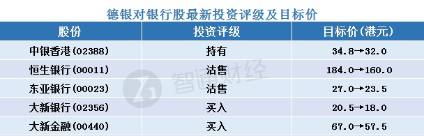 一、德银对银行股最新投资评级及目标价汇总