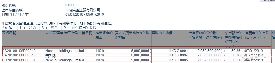Ltd于1月4日及7日增持中骏集团控股(01966)1100万股,每股分别作价2.8005和2.8994港元,总值3139.89万港元,最新持股数增至20.58亿股,最新持股比例增至50.36%。
