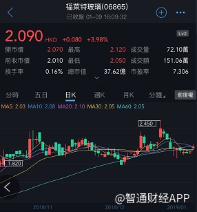 截至今日收盘,福莱特玻璃(06865)涨3.98%,报2.09港元。