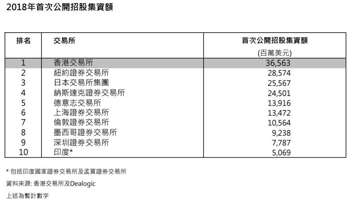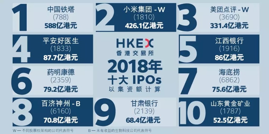 在IPO集资额最高的十家上市公司中,多达六家为新经济公司,其中包括两家不同投票权架构的新经济公司和一家未有收益的生物科技公司。